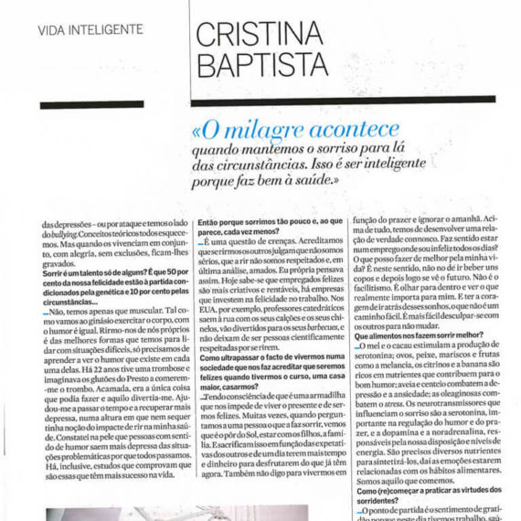 Além da clínica com múltiplas valências, a Dra. Cristina Baptista criou a Associação Sorrir e desenvolveu a Smile Dance®, projetos que promovem e salientam a importância de sorrir para o nosso bem-estar físico, emocional e mental.